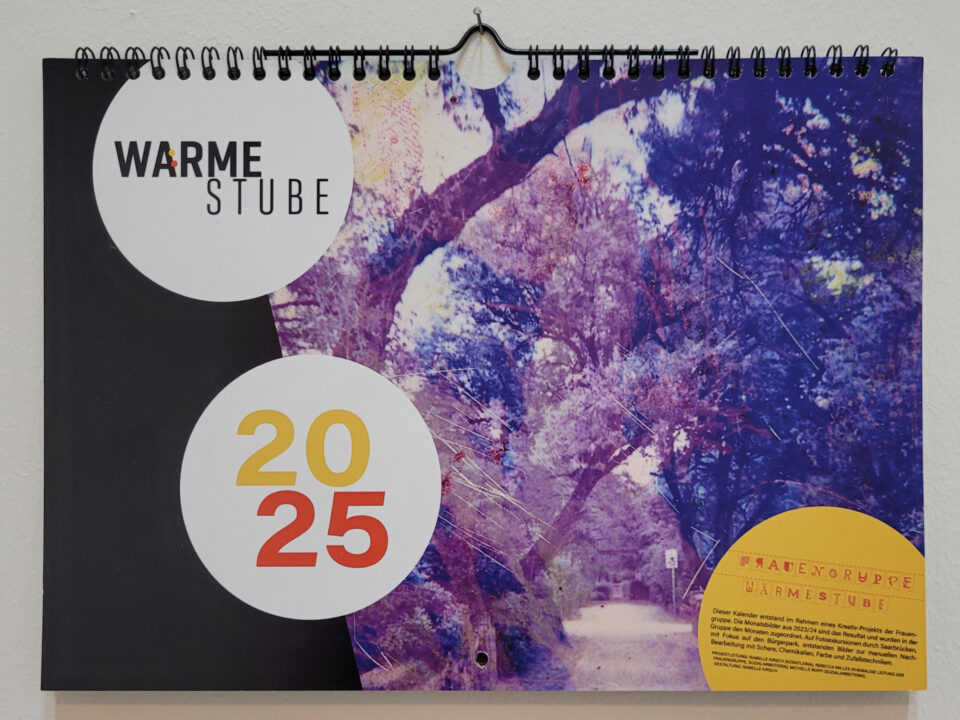 Die Wärmestube Saarbrücken ist ein Tagesaufenthalt für Obdachlose und arme Frauen und Männer. Jeden Mittwoch ist Frauengruppe. Im zweiwöchigen Zyklus wird ein Kreativprogramm angeboten. Angeleitet mit mir als Honorarkraft arbeiten wir ein Jahr mit Textilien und im zweiten Jahr unter dem manuelle Bildbearbeitung. Die Ergebnisse präsentierte die Gruppe beim Nauwieser Viertelfest im Jahr 2022 und bei Kunst am Staden im Jahr 2023.